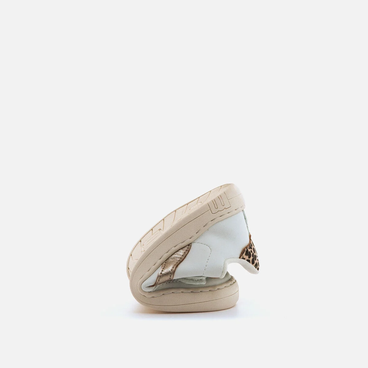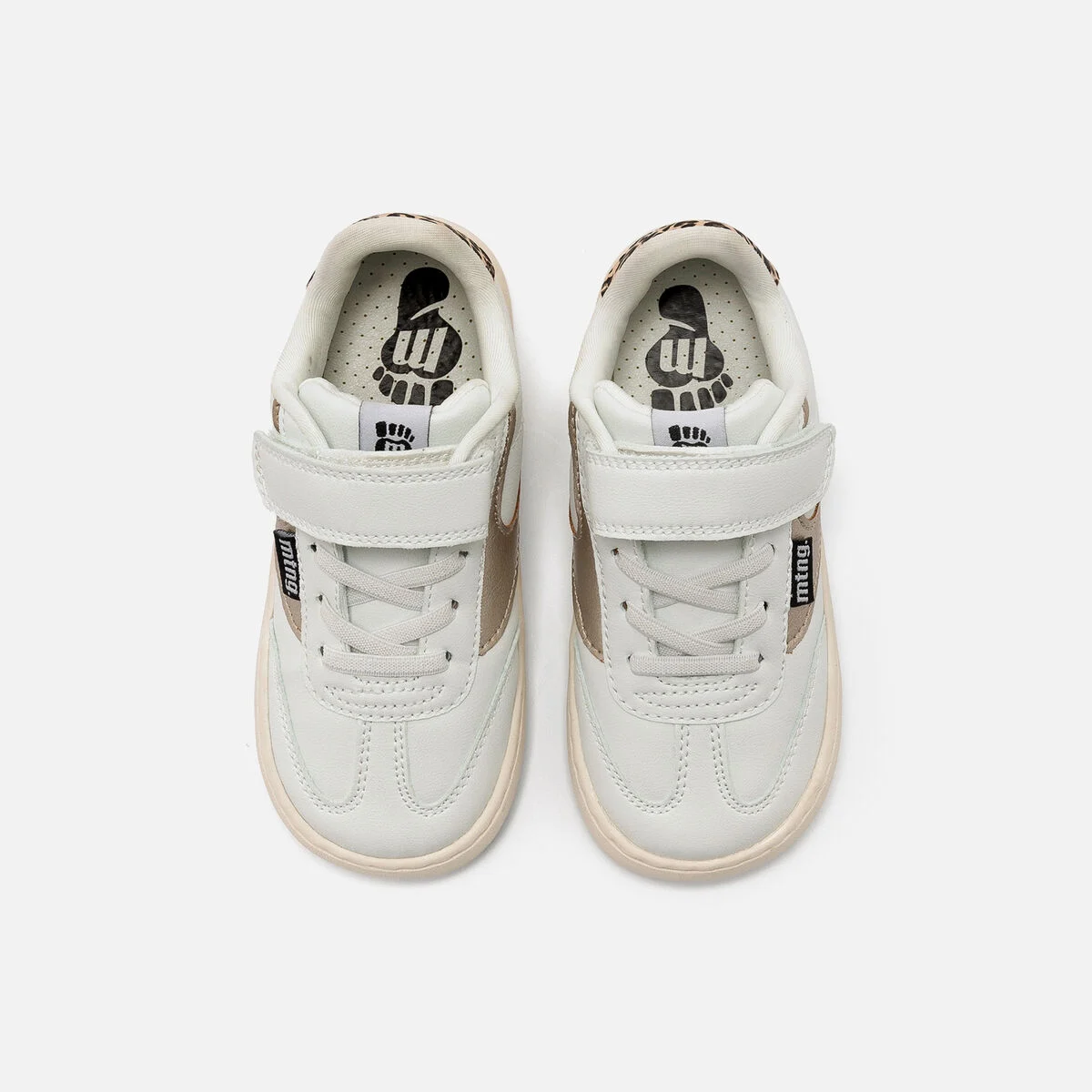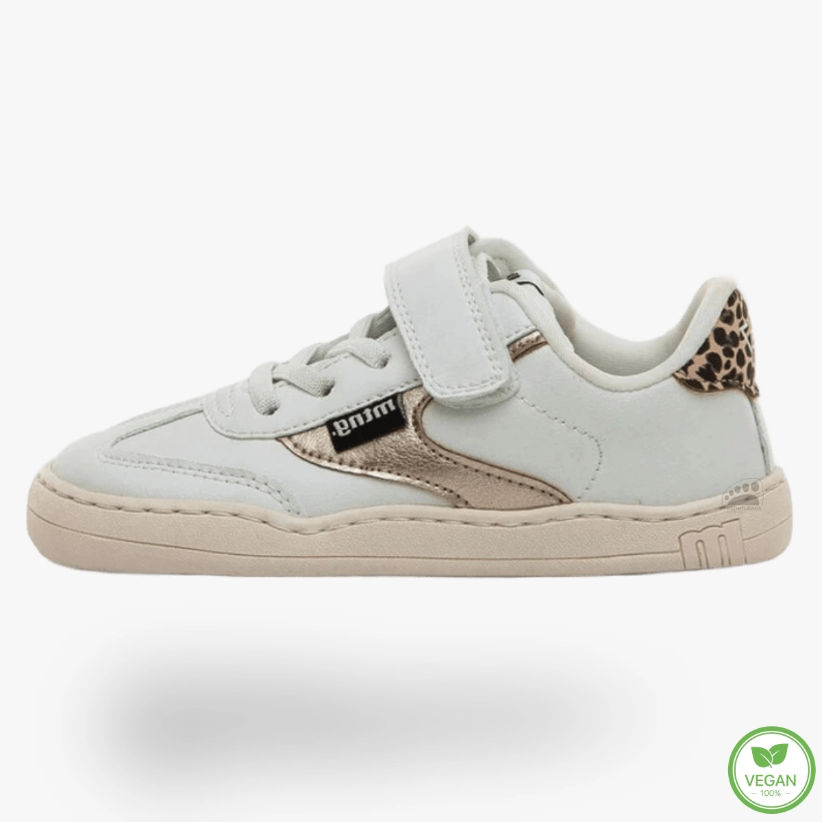 Incorpora detalles metalizados dorados y talón con estampado animal print de leopardo que aportan un toque distintivo al diseño. El cierre adhesivo y los cordones garantizan un ajuste cómodo y práctico.